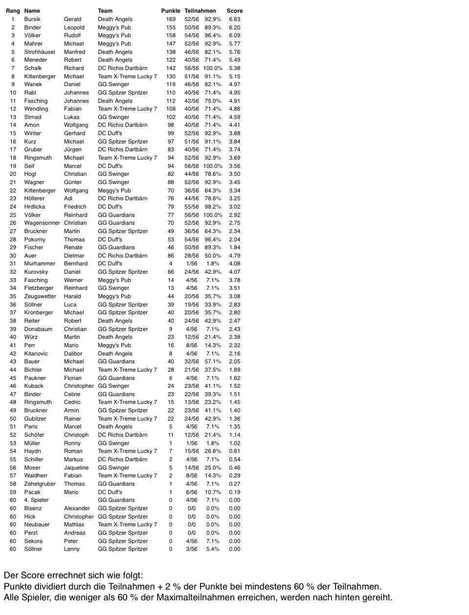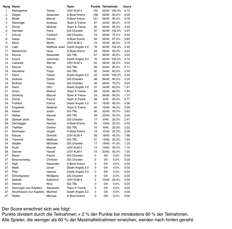 Die Herbstsaison der ÖCSV Mannschafts-Meisterschaft ist zu Ende und wir als Verein, sind stolz auf die Leistungen unserer teilnehmenden Mannschaften.